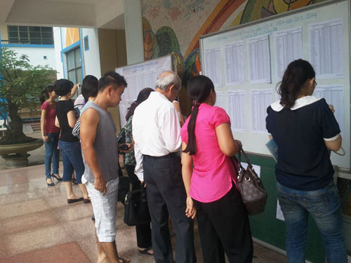 Tuy nhiên, trong sáng 25/5 mới chỉ niêm yết danh sách đăng ký dự tuyển vào lớp quốc tế và lớp dạy tăng cường tiếng Anh. Theo danh sách này, có 33 phòng thi với tổng số khoảng 1.400 học sinh đăng ký dự thi.