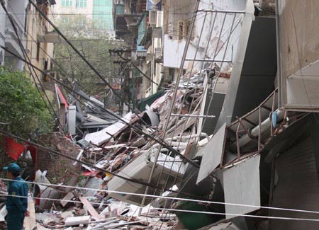 Theo phản ánh của một người dân sống tại tầng 4 chung cư 51 Huỳnh Thúc Kháng (Hà Nội), tòa nhà bị sập trước đó là nhà nghỉ nhưng hiện đã chuyển giao cho chủ mới thuê là nhà hàng Pizza Hut. Do cơi nới quá nhiều nên tòa nhà đã bị nghiêng và đổ sập hoàn toàn, kéo theo một phần chung cư 51.“Lúc nhà 5 tầng bị nứt, gia đình tôi và các nhà hàng xóm được cảnh báo sơ tán khỏi nhà. Tôi vội vàng chạy xuống tầng 1 thì thấy khe nứt đang to dần, khi chạy lên nhà để báo mọi người thì tòa nhà đó đã sập hoàn toàn. Lúc đấy, tôi tưởng có bom nổ, bụi và gạch bắn tung khắp nơi. Tôi vô cùng sợ hãi. Rất may nhà tôi ở bên trái nên không sao, còn phía đầu hồi của khu chung cư gồm 9 hộ dân bị thiệt hại nặng”, ông Vinh, một người dân sống ở chung cư 51, cho biết.Ông Long, Tổ trưởng tổ dân phố khu chung cư 51, có nhà bị nứt vỡ và ban công bị méo lệch do bê tông của tòa nhà sập bắn vào, bức xúc: “Chúng tôi rất lo lắng và vô cùng bức xúc vì tòa nhà này khi thi công đã gây không ít phiền toái, vừa ồn ào, bụi bặm, không an toàn và bây giờ thì đổ sập vào cả nhà chúng tôi. Nếu khi đó tôi vẫn ngủ trưa trong phòng thì có lẽ bây giờ không còn đứng ở đây”.Theo ông Long, một phần chung cư bị phá hỏng khiến một nạn nhân nhỏ tuổi bị thương nhẹ, đã được đưa đi bệnh viện. Tổ dân phố đang cùng phối hợp với công an và cán bộ phường sơ tán toàn bộ hộ dân bị ảnh hưởng, lo chỗ ở cho người có nhu cầu, giám định tổn thất cụ thể.